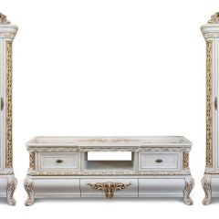 Гостиная Алсу 2+2 белый глянец - состоит из тв тумбы и двух двухстворчатой витрин, поистине королевская мебель созданная на фабрике ЭРА-Мебель. Алсу отличается максимально светлым тоном выкраски и глубокой золотой патиной.
