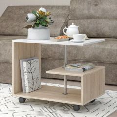 Журнальный стол "Гефест №1" имеет открытые ниши для расположения предметов домашнего быта. Удобные колесные опоры позволяют легко перемещать столик.