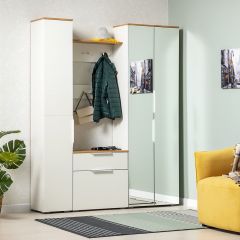 Вместительная и лаконичная модель прихожей «Ксения-2» позволит разместить большое количество вещей. Модель состоит из распашного шкафа, открытой зоны с крючками для одежды и полками для аксессуаров, а также отделения для обуви. Прихожая оснащена зеркалом, чтобы вы всегда могли оценить свой образ пред выходом.
