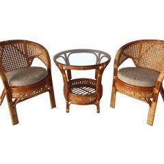 Комплект мебели Пеланги 02/15 включает в себя: 2 кресла и столик с красивым плетением снизу и полочкой, съемные подушки из материала улучшенного качества.